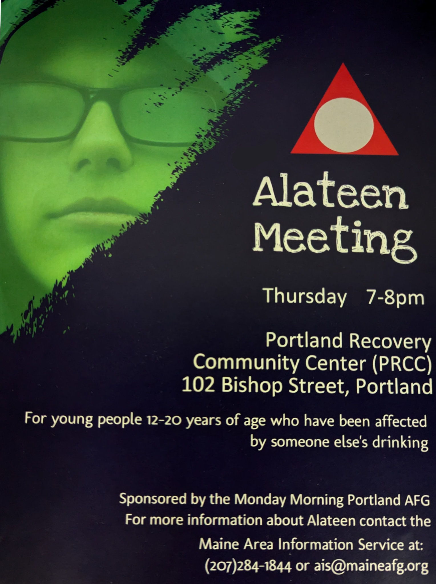Alateen Meeting Thursdays from 7pm-8pm. + Add to Google Calendar + iCal / Outlook export 00 days 00 hours 00 minutes 00 seconds Date Oct 09 2025 Time 7:00 pm - 8:00 pm Location Portland Recovery Community Center 102 Bishop Street, Portland ME 04103 Share this event