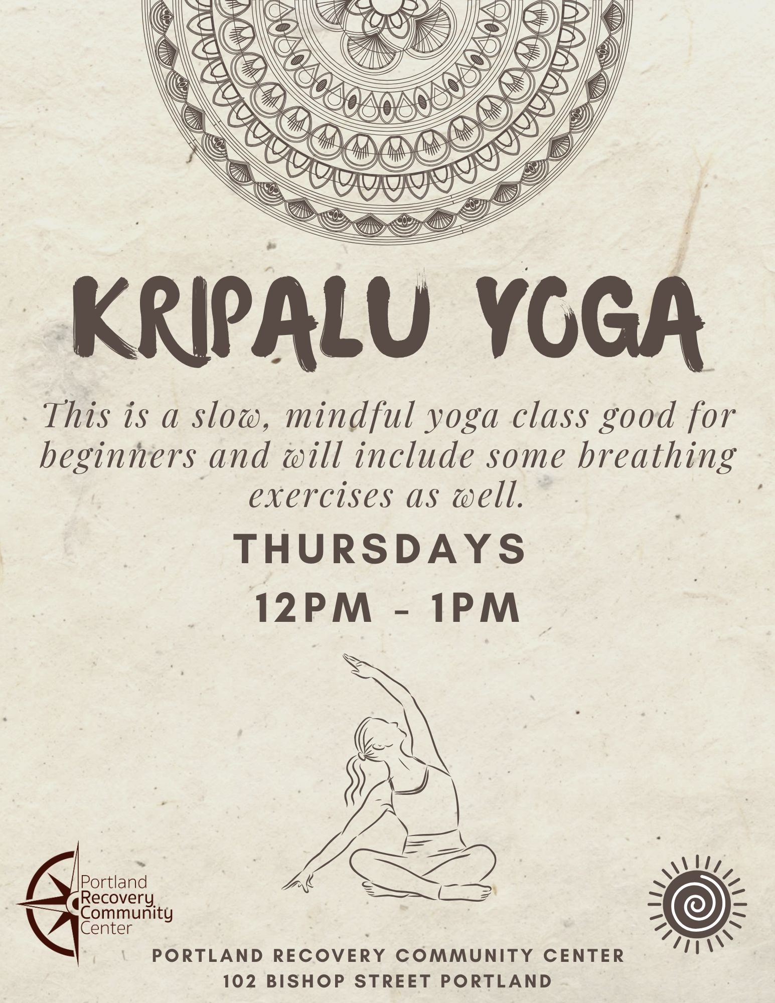 Kripalu Yoga Thursdays 12pm-1pm + Add to Google Calendar + iCal / Outlook export 00 days 00 hours 00 minutes 00 seconds Date Jan 01 2026 Time 12:00 pm - 1:00 pm Location Portland Recovery Community Center 102 Bishop Street, Portland ME 04103 Share this event